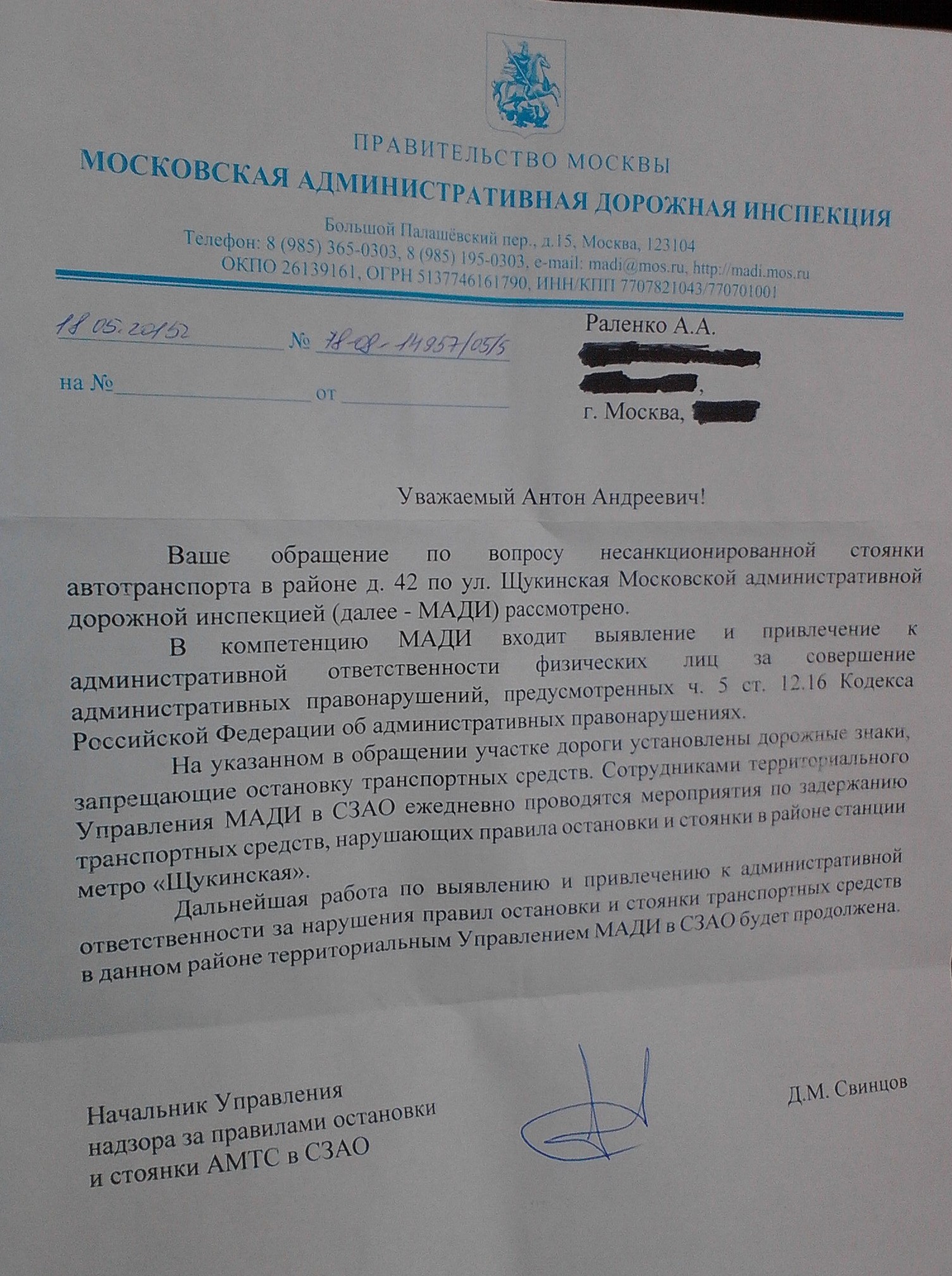 В рамках проекта «Центр социально — юридической защиты и развития правосознания «Во имя справедливости»» получен юридически значимый документ, являющийся ответом на обращения, направляемые различные государственные органы Российской Федерации.