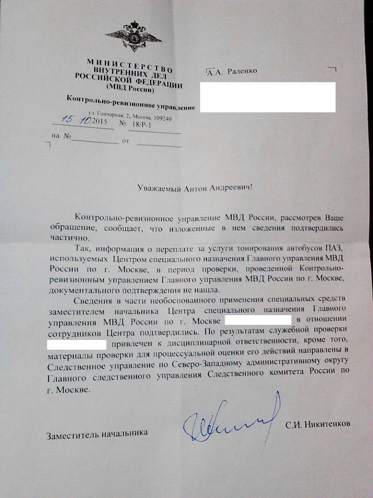 Сотрудники одного из силовых ведомств г. Москвы, по ряду причин не имеющие возможности самостоятельно бороться с нарушением руководством своих прав, обратились к участнику проекта. Поводом для этого было необоснованное применение спецсредств одним из высокопоставленных руководителей ведомства по отношению к своим подчиненным.